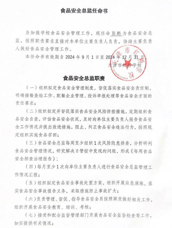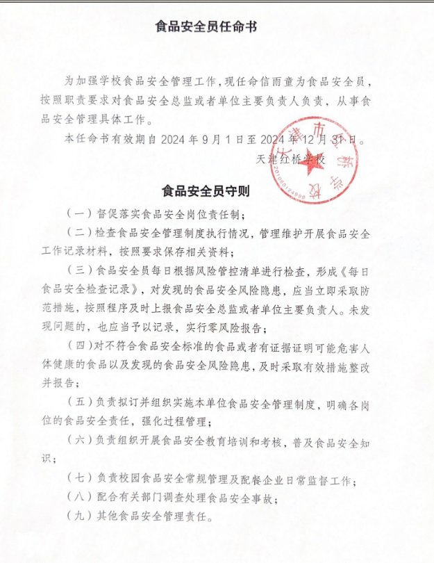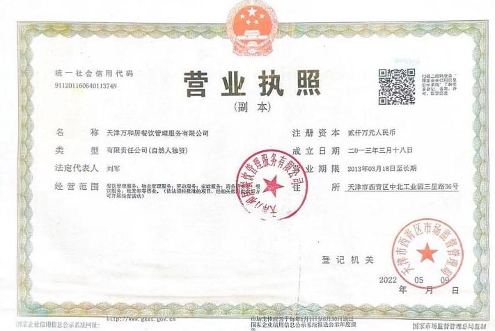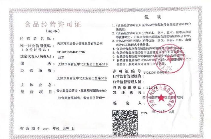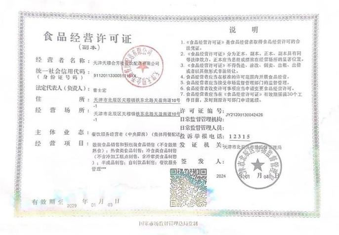 天津市红桥学校配餐企业资质