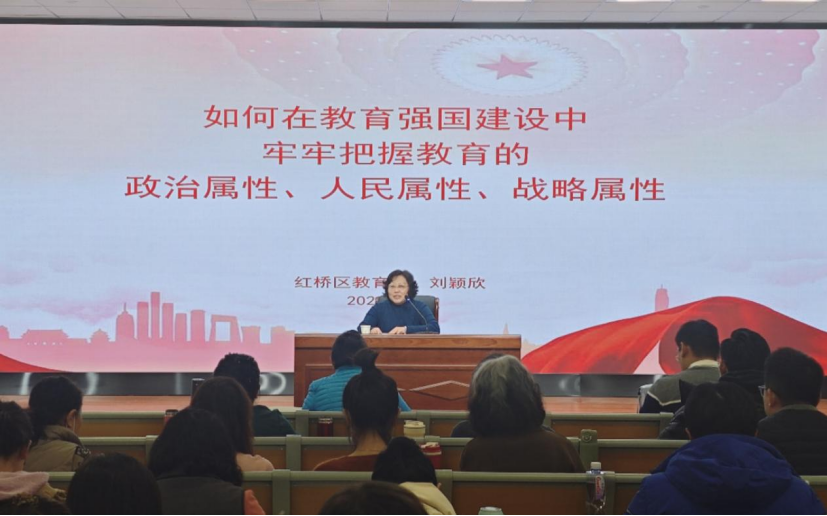 在培训讲座环节,教育局干部科刘颖欣科长为我校教师进行了主题为《如何在教育强国建设中牢牢把握教育的政治属性、人民属性、战略属性》的专题培训。刘科长详细解读了在教育强国建设背景下教育三大属性的重要意义,剖析了教育政策目标,梳理了教育政策内容,带来了前沿的教育理念和实用的教学方法。培训内容涵盖了教师专业成长、班级管理、教育科研等多个方面,为今后的教育教学工作指明了方向。