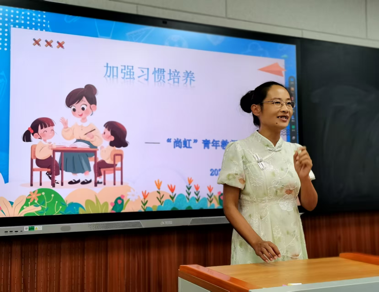 首先,于莉老师以“加强习惯培养,助力提质增效”为主题,为在场的青年教师带来了一场深入浅出的分享。于老师围绕课堂教学分享了四大关键维度:以教师饱满精神状态为基石,用激情营造积极氛围;以关注学生课堂细微表现为抓手,及时反馈实现有效互动;以系统性培养学习与行为习惯为核心,夯实学生长远发展基础;以精彩课程导入为关键,激活课堂、激发学生学习兴趣。