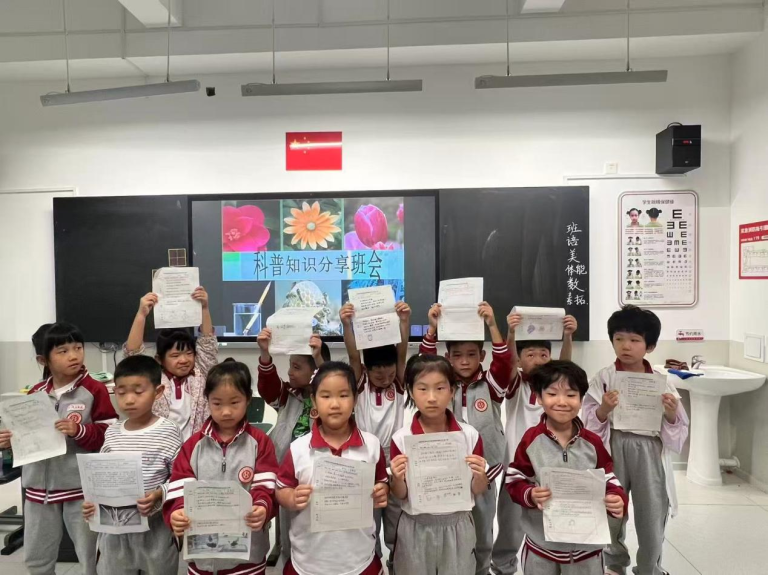 在学校的整体指导设计下,全校16个班级均召开了“科普知识分享班会”。班会现场热闹非凡,同学们化身“小小科普讲解员”,纷纷拿出自己搜集的科普资料。有的学生分享宇宙星空的奥秘、有的学生讲解动植物的生长规律、还有的学生演示简单的科学小实验……在分享与交流中,同学们相互学习、共同进步,不仅拓宽了科学知识面,更在班级内营造了乐于分享、热爱科学的良好氛围。