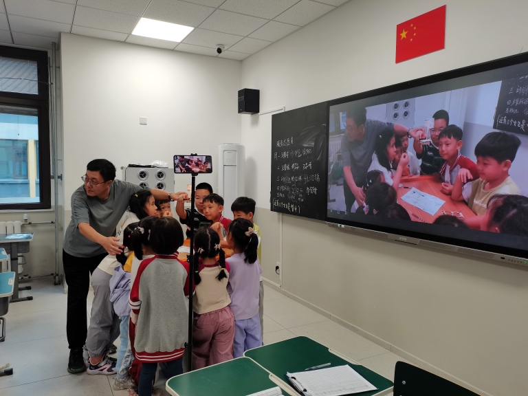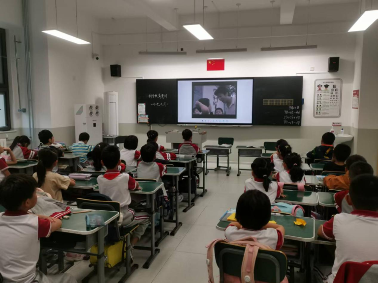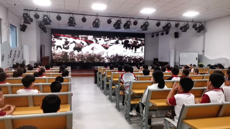学校依托“科普主题宣传”活动,在校园电子屏幕上滚动播放“传播科学思想 弘扬科学精神”、“科技改变生活 创新赢得未来”等科普宣传语,引领同学们关注科学、亲近科学,让科普理念深入人心,为红桥学校的科普月活动增添了浓厚的宣传氛围。9月24日,我校与共建单位天津市科技馆联合开展“科普电影进校园”活动,孩子们观看了《红耀九重》《永怀初心》等科普主题影片,通过机器人舞蹈、VR太空漫游等互动体验,在孩子们心中播下科技的种子。