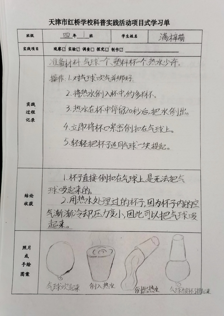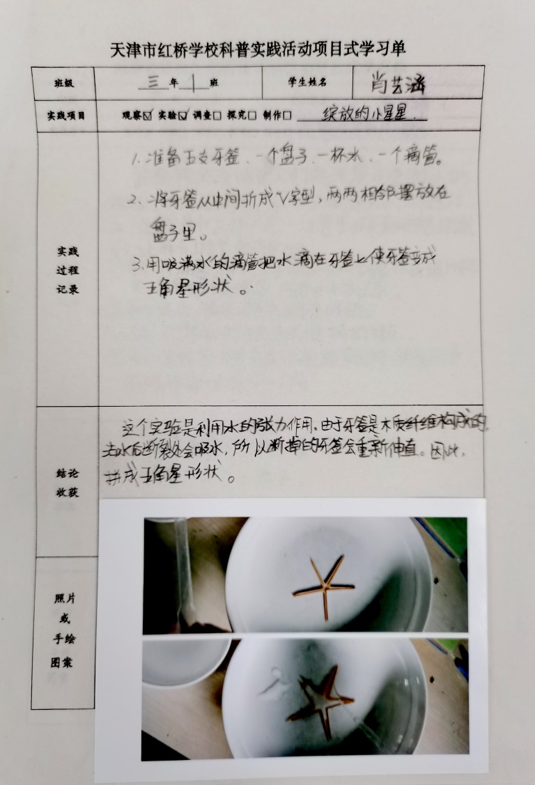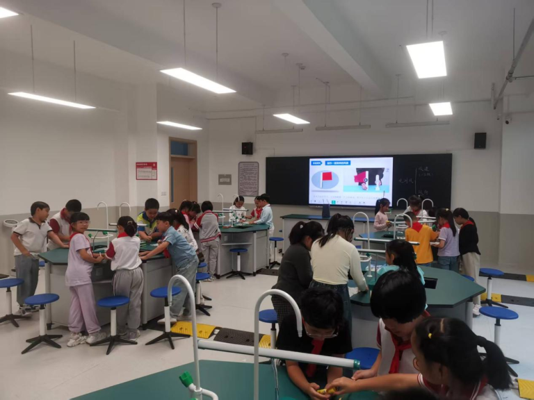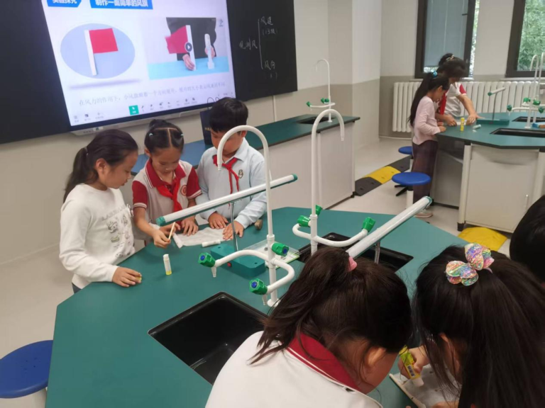 学校精心设计了学生科学实践的“项目式学习单”,涵盖观察、实践、调查、研究、小制作五大核心模块,旨在让每一位同学都能亲身参与到科学探索中,从被动接收知识转变为主动探究科学奥秘。学校领导深入三年级课堂,与师生共同制作“小风旗”,通过“折叠-固定-调试”的完整流程示范,将抽象的流体力学原理转化为可触摸的实践体验。这种“领导带头做科学”的示范效应,使师生互动全员参与,校园里“人人爱科学”的氛围蔚然成风。