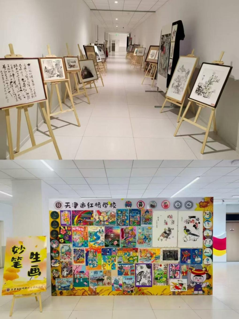 美育长廊展出了红桥区各小学的优秀美育成果,充分展示了区内各校在美育领域的丰富成果与教学特色。其中,我校师生的多件优秀作品也参与展出,作品包括儿童画、手工制作、国画等多种艺术表现形式,充分体现了我校在美育教育方面的积极探索和丰硕成果。