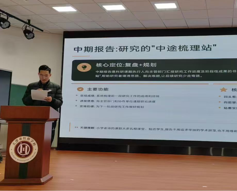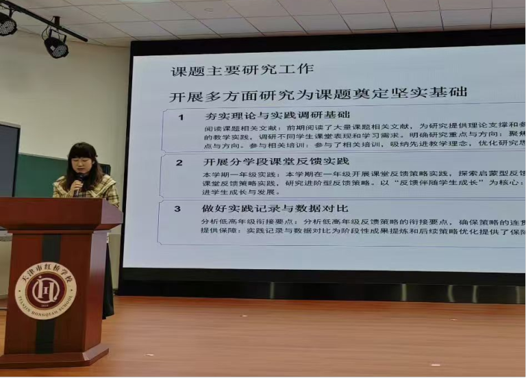 教育科研是教师专业发展的引擎。王轩主任、钟碧云老师分别就各自主持的微型课题进行了中期汇报。他们以问题为导向,以研究为支点,将日常教学中的困惑转化为研究课题,用扎实的数据和案例展示了课题研究的阶段性成果。
