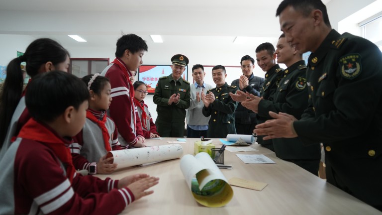 队员们满怀崇敬,积极举手提问,围绕“功臣号”精神的当代意义、军人的日常训练等问题踊跃交流,眼中闪烁着对军人的崇拜与向往,认真记录每一句分享、每一段故事。这场跨越年龄、联结馆校军三方的对话,让队员们深刻领悟了新时代“功臣号”精神的核心内涵,坚定了传承红色基因、赓续英雄血脉的决心。